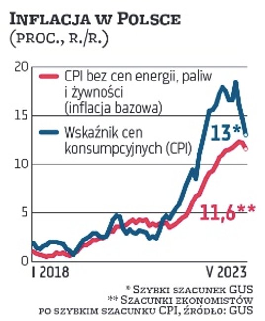 We wtorek Rada Polityki Pieniężnej, zgodnie z jednomyślnymi oczekiwaniami ekonomistów, postanowiła utrzymać główną stopę NBP na niezmienionym od września ub.r. poziomie 6,75 proc. Prezes Glapiński, przewodniczący RPP, uzasadniał tę decyzję tym, że inflacja opada zgodnie z marcowymi prognozami Departamentu Analiz i Badań Ekonomicznych NBP (tzw. projekcją). W maju, jak wstępnie oszacował GUS, inflacja wyniosła 13 proc. rok do roku, o ponad 5 pkt proc. mniej niż w szczycie z lutego. W ocenie Glapińskiego w kolejnych miesiącach spadek będzie równie szybki i już we wrześniu dynamika cen konsumpcyjnych może się znaleźć poniżej 10 proc. Prezes NBP podkreślał, że w maju po raz pierwszy istotnie zmalała też inflacja bazowa, nieobejmująca cen energii i żywności. – Dezinflacja obejmuje coraz szersze spektrum towarów i usług – przekonywał.