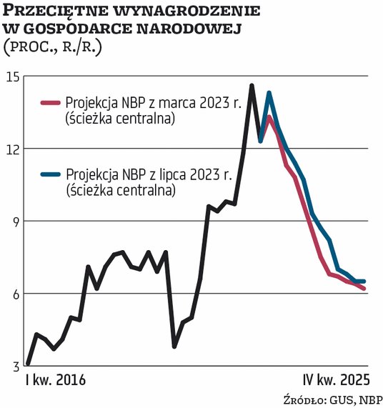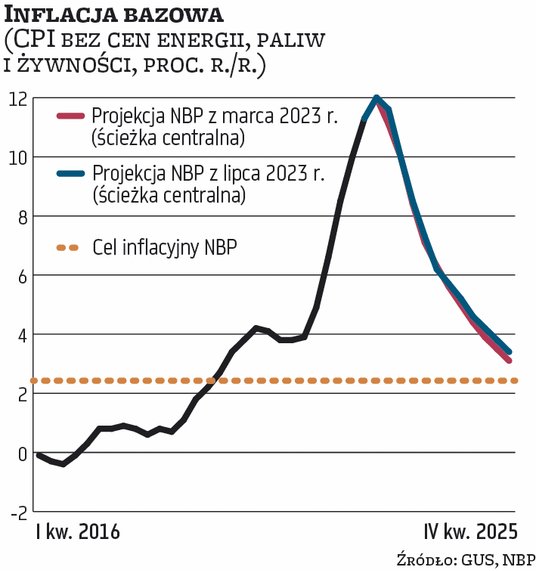 Kluczowy jest przede wszystkim drugi warunek. W czerwcu ekonomiści sądzili, że RPP poczeka na listopadową projekcję inflacji (to prognozy Departamentu Analiz i Badań Ekonomicznych NBP, sporządzane przy założeniu, że stopy się nie zmienią), bo wcześniejsza, lipcowa, nie da pewności, że w horyzoncie oddziaływania polityki pieniężnej inflacja wróci do celu banku centralnego, tj. 2,5 proc. z dopuszczalnymi odchyleniami o 1 pkt proc. w każdą stronę. I rzeczywiście, nowe prognozy DAiBE NBP, które RPP poznała na lipcowym posiedzeniu, nie są bardziej optymistyczne od marcowych. Tymczasem prezes NBP sugerował, że zarysowana w nich ścieżka inflacji spełnia drugi z wymienionych przez niego warunków.