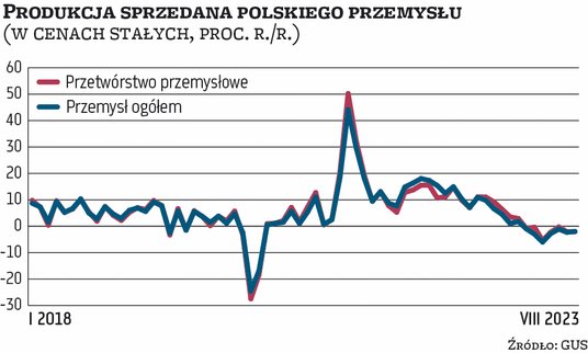 Za recesję w przemyśle w coraz większym stopniu odpowiada przetwórstwo przemysłowe. W sierpniu produkcja w tej części przemysłu zmalała o 2,1 proc. rok do roku, tak samo jak miesiąc wcześniej. Ale obraz nie jest jednoznaczny. – W stosunku do sierpnia ub.r. spadła produkcja dóbr zaopatrzeniowych oraz dóbr konsumpcyjnych, ale w obu kategoriach skala spadku zmalała. Wciąż w solidnym tempie rosła natomiast produkcja dóbr inwestycyjnych (o 10,5 proc. r./r.) – mówi Grzegorz Maliszewski, główny ekonomista Banku Millennium. – Wyniki te potwierdzają słabość popytu konsumpcyjnego oraz obniżoną aktywność zakupową przedsiębiorstw (redukują zapasy – red.). Wynikom polskiego przemysłu nie sprzyja też słaba koniunktura w otoczeniu zewnętrznym, co przekłada się na spadek zamówień eksportowych. Utrzymuje się natomiast popyt na dobra inwestycyjne – dodaje.