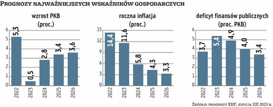 I tak, jeśli chodzi o tempo rozwoju, to można spodziewać się ożywienia i wzrostu PKB o 2,8 proc. wobec jedynie 0,5 proc. w 2023 r. Ten wzrost napędzać ma głównie spożycie indywidualne (wzrost o 3,8 proc. wobec spadku o 0,7 proc. w 2023 r.), za to dynamika inwestycji może być znacząco niższa ze względu na dużą niepewność otoczenia rynkowego (2,4 proc. wzrostu w 2024 r. wobec 7,2 proc. w 2023 r.).