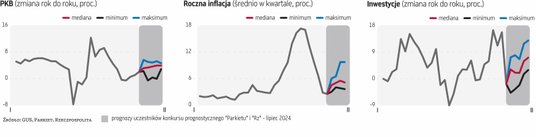 Za to pojawia się większe ryzyko na początek 2025 r. W ostatnich dniach okazało się, że resort finansów planuje znacząco szybsze niż dotychczas podwyżki akcyzy na wyroby tytoniowe i alkohol (przykładowo akcyza na papierosy w styczniu 2025 r. ma wzrosnąć o 25 proc., a nie o 10 proc. ). Jeśli zrealizują się te zapowiedzi, wskaźnik CPI może być wyższy w 2025 r. o dodatkowe 0,15–0,2 pkt proc. Nie do końca też wiadomo, jak od nowego roku będę wyglądały rachunki gospodarstw domowych za energię. Obecnie więc ekonomiści w naszym konkursie prognozują, że o ile w III kwartale 2024 t. inflacja wyniesie średnio 4,5 proc., o tyle w IV kwartale przyspieszy do 5 proc., a w I kwartale 2025 r. – do 5,5 proc. W II kwartale przyszłego roku może się lekko obniżyć do 5,1 proc. – Naszym zdaniem inflacyjny szczyt zostanie osiągnięty właśnie w I kwartale 2025 r., gdy wskaźnik CPI nieznacznie przebije 6 proc. – uważa Marta Petka-Zagajewska, dyrektor Biura Analiz Makroekonomicznych w PKO BP.