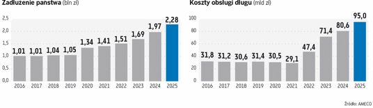 Po uwzględnieniu długu innych podmiotów publicznych niż budżet państwa koszty te w 2024 r. mają wynieść łącznie 80,6 mld zł. A w 2025 r. wzrosnąć o kolejne 15 mld zł, do 95 mld zł – wynika z prognoz Komisji Europejskiej.