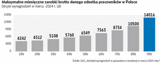 GUS pierwszy raz w historii opublikował „Rozkład wynagrodzeń w gospodarce narodowej” – na razie za styczeń, luty i marzec 2024 r. Najważniejszą nowością jest to, że pokazał w nich medianę płac, czyli wartość środkową. W marcu wyniosła ona 6549,22 zł brutto. Dokładnie połowa osób zarabiała więcej, a druga połowa mniej niż ta kwota. Chodzi o gospodarkę narodową, czyli szerszą grupę niż tylko sektor przedsiębiorstw (firmy z ponad dziewięcioma pracownikami). Nowe dane GUS obejmują także m.in. mniejsze biznesy, sferę budżetową oraz rolnictwo.