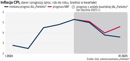 Glapiński zauważał też m.in. przyspieszający wzrost gospodarczy, podwyższoną inflację bazową (według prognoz NBP w okolicach 4 proc. przez cały 2025 r.), brak zacieśnienia fiskalnego przez rząd oraz ryzyko wzrostu oczekiwań inflacyjnych na skutek przedłużającego się okresu inflacji powyżej celu NBP. Ale na przeciwnej szali są argumenty podnoszone przez innych członków RPP, m.in. że w rzeczywistości wzrost cen energii będzie zapewne niższy od obecnej prognozy NBP, że RPP nie powinna się tym przejmować, bo to czynnik regulacyjny, niezależny od polityki pieniężnej, czy że różne mierniki inflacji (np. z wykluczeniem cen energii, żywności i cen regulowanych) sugerują słabnącą presję inflacyjną w gospodarce. Zwracają też uwagę na czas oddziaływania decyzji Rady. Na tej podstawie w grudniowej rozmowie z „Parkietem” członek RPP prof. Ireneusz Dąbrowski mówił, że Rada powinna przystąpić do cyklu obniżek w trzecim kwartale 2025 r., aby oddziaływać w horyzoncie końca 2026 r., gdy według prognoz inflacja wróci do celu na trwale. Bywają i jeszcze bardziej „gołębie" głosy, np. dr Ludwik Kotecki nie wyklucza, że można by otworzyć dyskusję o obniżkach stóp nawet jeszcze w pierwszej połowie roku.