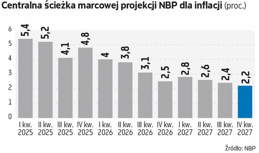 Spodziewana na początek roku górka inflacyjna rzeczywiście zaistniała, niemniej jest niższa, niż oczekiwano. Ba, opublikowana raptem w piątek nowa projekcja NBP dla inflacji i PKB zakładała, że w pierwszym kwartale inflacja w Polsce wyniesie średnio 5,4 proc. Żeby tak było, w marcu inflacja musiałaby wynieść około 6,4 proc. To niemożliwe. Owszem, może wynieść lekko powyżej 5 proc., ale to oznaczałoby średniokwartalną inflację w okolicach 5 proc., o 0,4 pkt proc. poniżej projekcji NBP. Niższy punkt startowy to ryzyko w dół dla prognoz na resztę roku. Zgodnie z projekcją Narodowego Banku Polskiego w drugim kwartale inflacja miałaby spaść do 5,2 proc. (średnio w kwartale), w trzecim do 4,1 proc., w czwartym wzrosnąć do 4,8 proc. – Wydaje się, że wpływ rewizji wag jest raczej krótkookresowy, dotyczy głównie pierwszej połowy roku – komentował podczas piątkowej konferencji prasowej Jacek Kotłowski, dyrektor departamentu analiz i badań ekonomicznych NBP. Na poziom inflacji w Polsce silny wpływ mają obecnie czynniki regulacyjne, m.in. podwyżka VAT na żywność w kwietniu 2024 r. (od kwietnia 2025 r. ten efekt zniknie z wyliczeń, ale za to wzrośnie wówczas akcyza na wyroby tytoniowe), częściowe odmrożenie cen energii z lipca 2024 r. (ten efekt zniknie w lipcu 2025 r., stąd prognozy silnego spadku inflacji w trzecim kwartale) czy wzrost akcyzy na alkohol. Szacunki NBP dla danych za czwarty kwartał 2024 r. wskazują, że w średniej inflacji 4,8 proc. czynniki regulacyjno-podatkowe odpowiadały za 2,7 pkt proc.