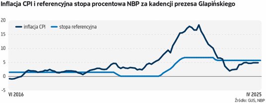 – Sytuacja zmieniła się znacząco. Można by powiedzieć żartobliwie, że przylatuję jako gołąb na czele gołębi. Rada oczekuje, że sytuacja będzie zmieniała się w kierunku obniżania stóp procentowych – powiedział szef NBP. Zwrócił uwagę na niższą od oczekiwań inflację (4,9 proc. w marcu i dwóch poprzednich miesiącach) oraz inflację bazową (w lutym 3,6 proc., niższa nie była od prawie czterech lat, w marcu zapewne 3,4–3,5 proc.). – Można oceniać, że inflacja bazowa w pierwszym kwartale obniżyła się w pobliże górnej granicy odchyleń od celu inflacyjnego NBP, tj. 3,5 proc. Wciąż jest podwyższona, ale wyraźnie spadła względem czwartego kwartału 2024 r. (4,1 proc.) – powiedział Glapiński.