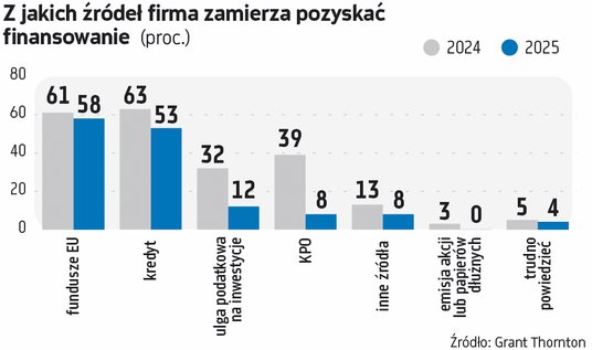 Na pytanie, „czy zamierzasz w 2025 r. pozyskać finansowanie zewnętrzne na sfinansowanie swoich inwestycji”, aż 46 proc. przedsiębiorców odpowiedziało przecząco. Rok temu takich odpowiedzi było 36 proc.