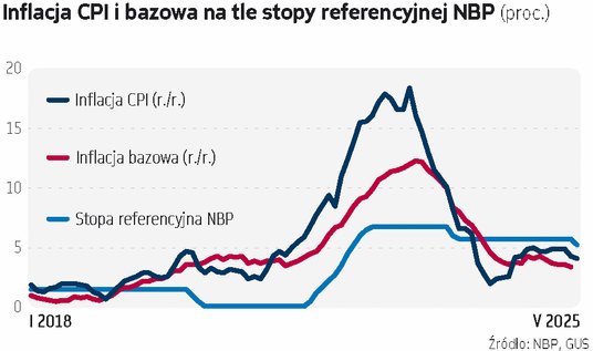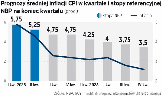 Ostatnie dane sugerują, że perspektywy inflacji się poprawiają. Inflacja bazowa spadła w kwietniu do 3,4 proc., najniżej od pięciu lat. Szybki szacunek inflacji w maju wypadł lepiej od prognoz ekonomistów (4,1 proc.). Zakładając, że w czerwcu będzie podobna, to w całym drugim kwartale powinna być znów poniżej ostatnich prognoz NBP (4,3 proc.). Bardzo możliwe, że ciąć przyjdzie też NBP prognozy inflacyjne na drugą połowę roku. W maju przewidywał, że w trzecim kwartale inflacja wyniesie średnio 3,4 proc. Tyle że efekt wysokiej bazy sprzed roku (gdy częściowo odmrożono ceny nośników energii), obniżka cen gazu dla gospodarstw domowych od lipca o około 15 proc. (oby), wciąż najniższe od lat ceny paliw i sygnalizowana przez inflację bazową powoli słabnąca presja inflacyjna w gospodarce powinny sprowadzić wskaźnik inflacji od lipca w okolice 3 proc. Wszystko mimo przywrócenia od lipca opłaty mocowej na rachunki za prąd. Co więcej, na czwarty kwartał bank centralny oczekuje inflacji średnio na poziomie 4,1 proc., co wydaje się prognozą mało prawdopodobną. NBP opiera się na aktualnym stanie prawnym dotyczącym cen energii dla gospodarstw domowych. Ten zakłada wzrost tego komponentu na rachunkach za prąd o około jedną czwartą od października. Tyle że do końca lipca spółki przedstawią URE nowe wnioski taryfowe, w których ceny powinny być już zbliżone do aktualnego zamrożonego poziomu 500 zł/MWh. To oznaczałoby brak podwyżek.