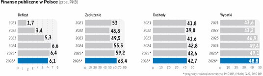 Z punku widzenia stanu finansów publicznych taka teza wydaje się zupełnie uprawniona. Już obecnie dochody w relacji do PKB spadają, wydatki zaś rośną. Deficyt budżetowy jest rekordowo wysoki, w tym roku ma sięgnąć nawet 290 mld zł, a wciąż pojawiają się nowe wyzwania. Od tych relatywnie mniejszej wagi, jak konieczność przedłużenia programu mrożenia cen energii czy podwyżek płac w budżetówce, po znacznie większe. Państwa NATO właśnie zgodziły się wydawać już 5 proc. PKB rocznie na obronność, a w kraju wkrótce wróci temat podwyżki kwoty wolnej od podatku do 60 tys. zł, co kosztowałoby budżet 50–60 mld zł.