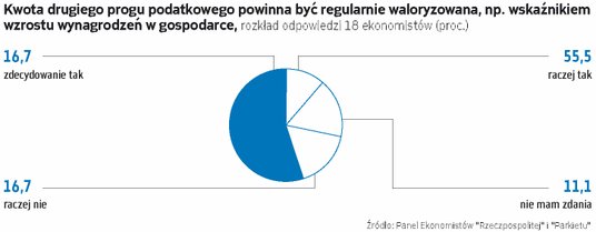 Prof. Rubaszek zgadza się więc z tezą „Parkietu” w ramach nowej rundy Panelu Ekonomistów, którą zadaliśmy przedstawicielom uczelni wyższych. Brzmiała ona dokładnie: „Kwota drugiego progu podatkowego – obecnie 120 tys. zł dochodów (podstawy opodatkowania) rocznie – powinna być regularnie waloryzowana, np. wskaźnikiem wzrostu wynagrodzeń w gospodarce”. Podobnie jak ekonomista z SGH sprawę widzi większość badanych ekonomistów (łącznie 13 z 18, w tym troje zdecydowanie zgadza się z tezą). Przeciwnego zdania było troje ekspertów, a dwoje nie ma zdania.