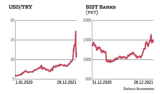 Ostatnie silne umocnienie liry prawdopodobnie było efektem działań rządu polegających na pokrywaniu przez państwo strat właścicieli depozytów w krajowej walucie (jeśli jej deprecjacja byłaby większa od oprocentowania lokat oferowanego przez banki). Analitycy serwisu Bloomberg Intelligence oceniają, że odbicie liry sprzed paru dni daje wprawdzie tureckim bankom oddech, ale wciąż spodziewają się, że rok 2022 będzie dla nich burzliwy, bo próby umocnienia liry mogą być krótkotrwałe, a osłabienia presji inflacyjnej nie widać. Dodatkowo zaplanowane na 2023 r. wybory prezydenckie zwiększają obawy, że polityka wspierająca wzrost gospodarczy kosztem rosnącej inflacji będzie podtrzymana.