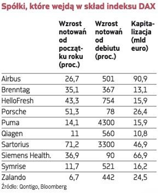 Już za tydzień główny indeks niemieckiej giełdy przejdzie gruntowną zmianę. Jego skład powiększy o dziesięć nowych spółek, które w ostatnich latach dynamicznie się rozwijały. Wszyscy nowi przedstawiciele indeksu blue chips dali w tym roku zarobić inwestorom. Zmienią się również reguły dotyczące rentowności pretendentów, którzy chcą zasilić DAX.