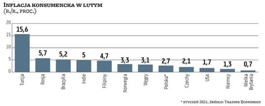 Przyspieszenie inflacji jest na razie głównie problemem części rynków wschodzących i granicznych. Pomijając pogrążoną w hiperinflacji Wenezuelę, spośród większych gospodarek najwyższa inflacja była w lutym w Iranie (48,2 proc.) i w Argentynie (40,7 proc.). Wciąż się wyróżniała pod tym względem też Turcja (15,61 proc.), a inflacja przyspieszyła również na Ukrainie (do 7,5 proc.), w Rosji (do 5,67 proc.), w Meksyku (do 3,76 proc.) czy w RPA (do 3,2 proc.). Dane z Polski za luty zostaną opublikowane dopiero w poniedziałek, ale już w styczniu była ona dosyć wysoka i wynosiła 2,7 proc. r./r. W części krajów regionu przyspieszała ona w lutym. Na Węgrzech sięgnęła 3,1 proc., w Rumunii – 3,2 proc., ale w Czechach lekko zwolniła do 2,1 proc.