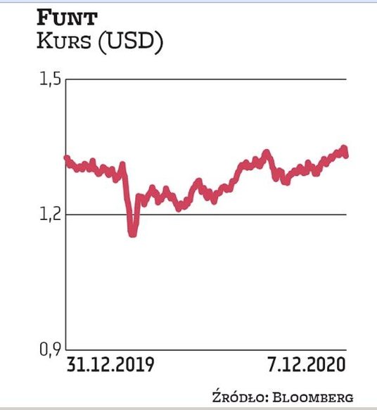 Kurs funta do dolara spadał w poniedziałek o ponad 1 proc. i sięgał 1,32 USD, czyli najniższego poziomu od ponad dwóch tygodni. Impulsem do osłabienia brytyjskiej waluty były przecieki dotyczące negocjacji brexitowych. Unijni i brytyjscy negocjatorzy nie zdołali w weekend uzgodnić umowy o relacjach gospodarczych pomiędzy Wielką Brytanią a UE, która miałaby obowiązywać od 1 stycznia 2021 r. Brytyjczycy poszli na ustępstwa w sprawie dostępu do łowisk, ale według przecieków Francja i Niemcy zażądały, by UE dostała prawo nakładania karnych ceł na brytyjskie produkty, jeśli Wielka Brytania będzie zbyt wolno dostosowywać się do unijnych regulacji.