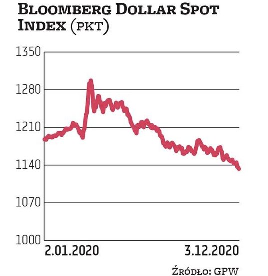 Zgodnie z indeksem Bloomberg Dollar Spot Index dolar tracił na wartości w stosunku do głównych walut w ciągu siedmiu z ostatnich 11 miesięcy. W sumie od stycznia stracił około 5 proc. wobec tych walut. Spadł również o prawie 8 proc. w stosunku do franka szwajcarskiego i o 4 proc. wobec jena. Według specjalistów podkreśla to wpływ bezprecedensowego bodźca, który stosuje Fed.