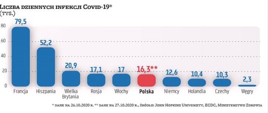 – Mając poczucie deja vu, rynki zdają się reagować na możliwość powtórki scenariusza z marca, gdy tysiące ludzi umarło, a szpitale były przepełnione. Pojawiają się też obawy, że nowe lockdowny zmiażdżą aktywność gospodarczą. Szczególnie niepokojąca jest sytuacja we Włoszech i Hiszpanii. Te gospodarki są już pod presją wydarzeń z wiosny i nie mogą sobie pozwolić na ich powtórkę – twierdzi Michael Hewson, analityk CMC Markets.
