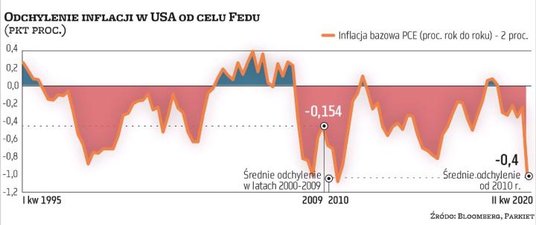 Choć same cele Fedu pozostały bez zmian, będą odtąd inaczej interpretowane. Zamiast dążyć do tego, żeby inflacja stale oscylowała w pobliżu 2 proc., FOMC będzie starał się utrzymać ją średnio na tym poziomie. „To oznacza, że po okresach z inflacją poniżej 2 proc. właściwa polityka pieniężna będzie zapewne dążyła do podniesienia na jakiś czas inflacji umiarkowanie powyżej 2 proc." – piszą członkowie FOMC.