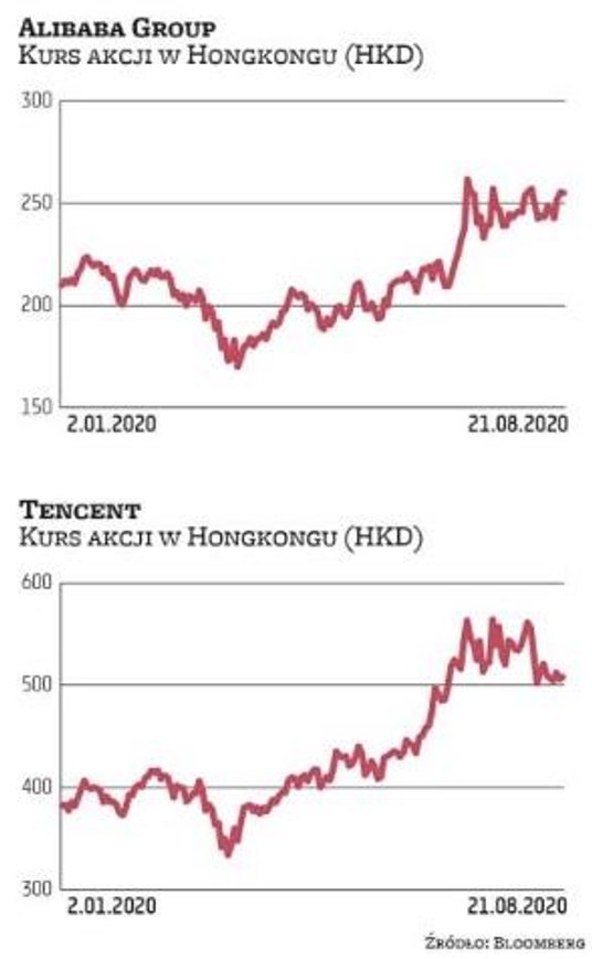 Administracja Trumpa coraz mocniej uderza w chińskie firmy technologiczne. Jednym z przejawów tej polityki jest prezydenckie rozporządzenie wprowadzające po 45 dniach od jego publikacji zakaz prowadzenia przez amerykańskie spółki transakcji z chińskimi właścicielami popularnych aplikacji TikTok i WeChat. (Później zostało ono zmodyfikowane, tak że ByteDance, właściciel aplikacji TikTok, dostał 90 dni na sprzedanie swoich operacji w USA. Spółce nakazano też skasować dane zdobyte od amerykańskich użytkowników TikTok). W ślad za tym poszło zaostrzenie sankcji przeciwko koncernowi Huawei. Amerykanie zakazali spółkom spoza USA sprzedawania (bez specjalnych licencji) tej firmie chipów zbudowanych z użyciem amerykańskiej technologii. Gdy prezydent Trump został spytany na konferencji, prasowej, czy sankcje obejmą w przyszłości też koncern Alibaba, odpowiedział: „Właściwie to przyglądamy się też innym".
