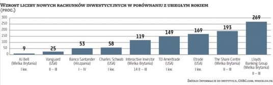 Od tegorocznego szczytu do dołka amerykański S&P 500 spadł o 33,9 proc., polski WIG20 o 40,6 proc., brytyjski FTSE 100 o 34,9 proc., niemiecki DAX o 38,8 proc., a hiszpański Ibex 35 o 39,4 proc. Wówczas rozpoczął się prawdziwy rajd na biura maklerskie. We wszystkich tych krajach instytucje oferujące zakup papierów wartościowych odnotowały ogromne zainteresowanie przeważnie młodych inwestorów, którzy do tej pory nie posiadali rachunków.