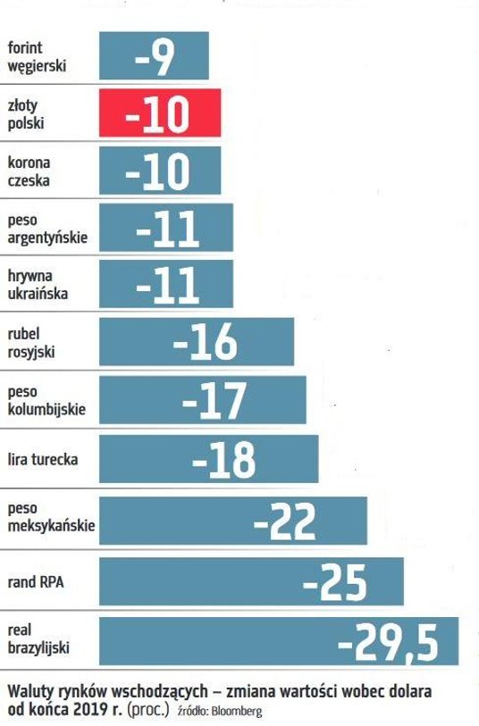 Kurs złotego zdołał się ustabilizować w ostatnich tygodniach, podobnie jak kursy walut większości państw naszego regionu. Za 1 USD płacono w czwartek późnym popołudniem 4,21 zł, o około 10 proc. więcej niż na koniec zeszłego roku. Podobnie osłabły w ostatnich miesiącach korona czeska i forint węgierski. Są jednak waluty z rynków wschodzących, w które kryzys koronawirusowy uderzył o wiele mocniej. Lira turecka straciła od końca 2019 r. 18 proc. do dolara i w czwartek była rekordowo słaba. Rand południowoafrykański spadł w tym czasie o 25 proc., a real brazylijski o niemal 30 proc. To wyraźne ostrzeżenie: inwestorzy pozbywają się walut państw, które nie radzą sobie z wysokim deficytem, inflacją i bezrobociem. A jeśli gospodarka danego kraju jest mocno zależna od rynków surowcowych (tak jak w Rosji, Meksyku, RPA czy Brazylii), to tym gorzej dla waluty. – Globalne środowisko na rynkach wschodzących jest wciąż bardzo zróżnicowane i jest wymagana większa niż dotychczas wybiórczość, gdyż pojawiają się napięcia – twierdzi Guilla- ume Tresca, strateg w Credit Agricole.
