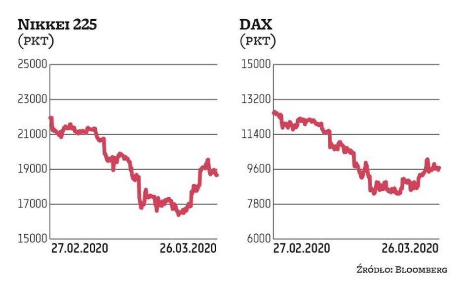 James Bullard, szef oddziału Fedu w St. Louis, ostrzegał, że bezrobocie w USA może sięgnąć 30 proc. Zaznaczał jednak, że to scenariusz, w którym nie doszłoby do przyjęcia dużego pakietu stymulacyjnego dla gospodarki amerykańskiej. (Taki pakiet, wart 2 bln USD, został w nocy ze środy na czwartek przyjęty przez Senat i skierowany do Izby Reprezentantów). Analitycy Goldman Sachs prognozują jednak, że stopa bezrobocia w USA wzrośnie w tym roku do 9 proc., eksperci Barclaysa mówią o wzroście do 10 proc., gdy analitycy firmy badawczej Capital Economics spodziewają się, że może ona skoczyć do 12 proc., co oznaczałoby utratę 14 mln miejsc pracy. Prognozują oni również, że stopa bezrobocia w strefie euro wzrośnie do 12 proc., czyli najwyższego poziomu od siedmiu lat.