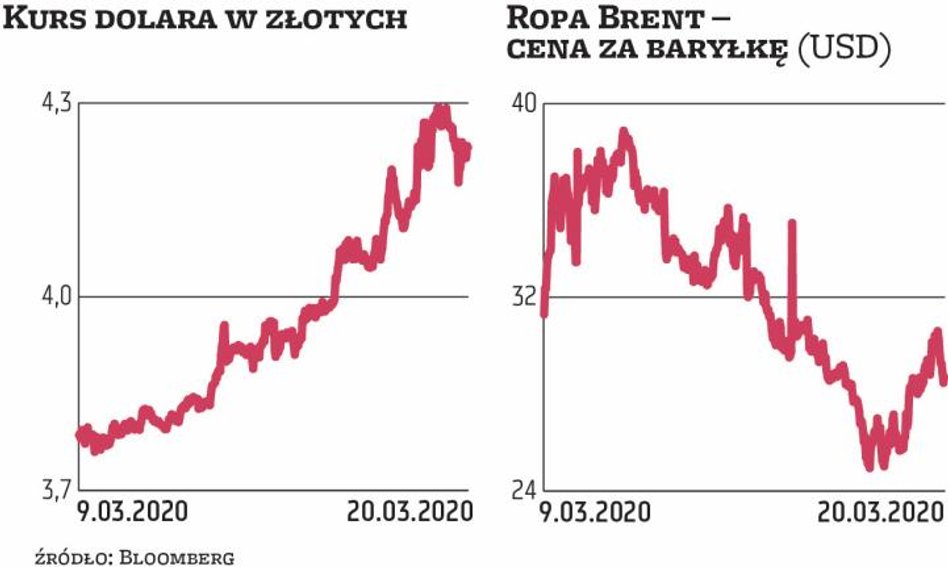 Słabł za to dolar. O ile w czwartek kurs dochodził do 4,30 zł za 1 USD, to w piątek rano spadł do 4,18 zł (ale po południu wynosił już 4,26 zł). Cena baryłki ropy gatunku Brent przez chwilę przekraczała 30 USD, jednak po południu wróciła do 28 USD.