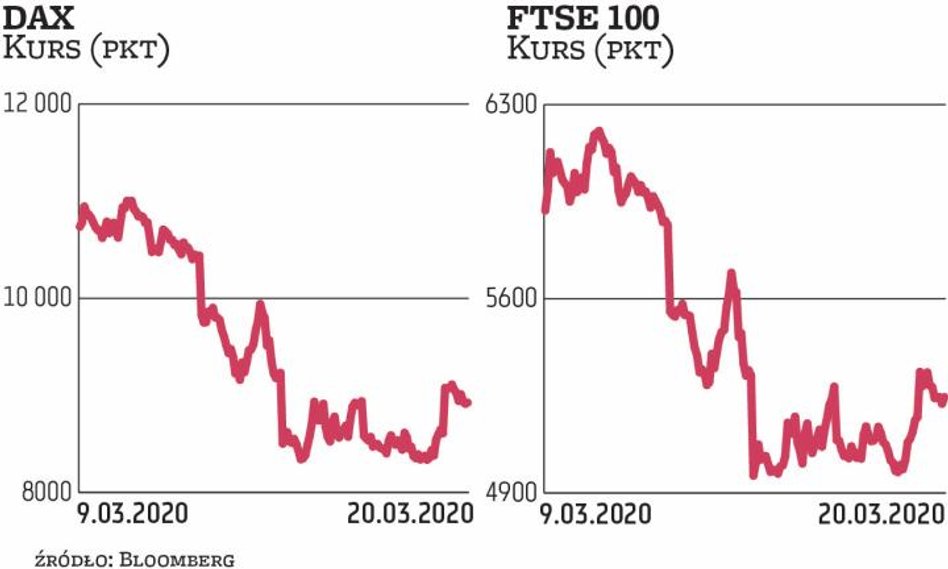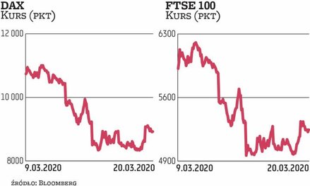 Piątkowa sesja przyniosła kontynuację poprawy nastrojów na rynkach. WIG20 rósł w jej trakcie nawet o 5 proc. Po południu zwyżki zmalały do niespełna 2 proc., a indeks oscylował wokół poziomu 1500 pkt. Niemiecki DAX rósł w tym czasie prawie o 4 proc., a francuski CAC40 o 5 proc. Spośród azjatyckich indeksów siłą zwyżek wyróżniły się w piątek koreański KOSPI (+7,4 proc.), malezyjski KLCI (+6,9 proc.) i tajwański Taiex (+6,4 proc.). Sesja w USA zaczęła się lekko na plusie, Dow Jones Industrial zyskiwał po otwarciu 0,8 proc.