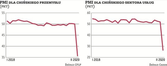 Na razie dane gospodarcze napływające z Chin, pokazują, że luty przyniósł paraliż gospodarczy. Liczony przez powiązaną z rządem Chińską Federację Logistyki i Zakupów (CFLP) wskaźnik PMI mierzący koniunkturę w przemyśle spadł z 50 pkt w styczniu do rekordowo niskiego poziomu 35,7 pkt w lutym. (W listopadzie 2008 r., czyli w czasie globalnego kryzysu, indeks ten spadał do 38,8 pkt). Wskaźnik PMI dla sektora usług runął natomiast z 54,1 pkt w styczniu do zaledwie 29,6 pkt w lutym. (Poprzedni rekordowo niski poziom wynosił 49,7 pkt i został odnotowany w listopadzie 2011 r.). Każdy odczyt tych indeksów poniżej 50 pkt mówi, że branża się kurczy. Konkurencyjny indeks PMI dla przemysłu mierzony przez firmy Markit i Caixin spadł z 51,1 pkt w styczniu do 40,3 pkt w lutym. Indeks dla usług zniżkował w tym czasie z 51,8 pkt do zaledwie 26,5 pkt. To wskazuje na głęboką zapaść, ale stanowi już tylko dane historyczne. Naprawdę ciekawe będą dane za marzec, pokazujące do jakiego stopnia gospodarka chińska zaczęła już się podnosić po epidemii.