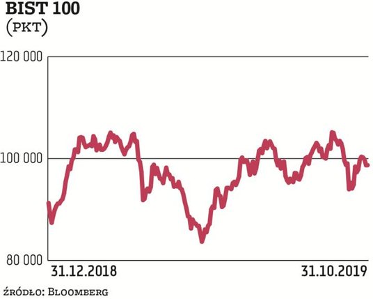 BIST 100 zyskał od początku roku ponad 8 proc. Na pierwszy rzut oka to wynik bardzo skromny. Od dołka z maja indeks ten skoczył jednak o 18,5 proc. Niewiele więc mu brakuje do wejścia w hossę. To zadziwiające, jeśli bierzemy pod uwagę to, jak wiele Turcja ma „złej prasy". W tym roku rynek turecki musiał się mierzyć z wyborami, które utwierdziły władzę prezydenta Recepa Tayyipa Erdogana, z obawami, że Erdogan zacznie mocniej ingerować w politykę pieniężną (co się spełniło), a także z turecką inwazją na północną Syrię i groźbą amerykańskich sankcji. Pod presją była też turecka waluta. Lira straciła wobec dolara od początku roku blisko 8 proc. W sierpniu, w czasie „błyskawicznego krachu", kurs dochodził nawet do 6,47 liry za 1 dolara, czyli poziomu z kryzysowego lata 2018 r. Później się jednak nieco ustabilizował. W połowie zeszłego tygodnia za 1 USD płacono 5,75 liry, co było poziomem podobnym jak przed październikową inwazją na syryjski Kurdystan. Od dołka z maja lira zyskała 8 proc. Do tej aprecjacji doszło, choć Bank Centralny Republiki Turcji od lipca (czyli od momentu, gdy Erdogan wymienił jego prezesa) obciął swoją główną stopę procentową o łącznie 10 pkt proc. Może więc Turcja przyciąga inwestorów swoimi wynikami gospodarczymi? Raczej nie. Średnia prognoz analityków zebranych przez agencję Bloomberga mówi, że PKB spadnie w tym roku 0,6 proc. Mimo to turecki rynek akcji radzi sobie w tym roku z jakichś powodów lepiej niż na przykład polski...