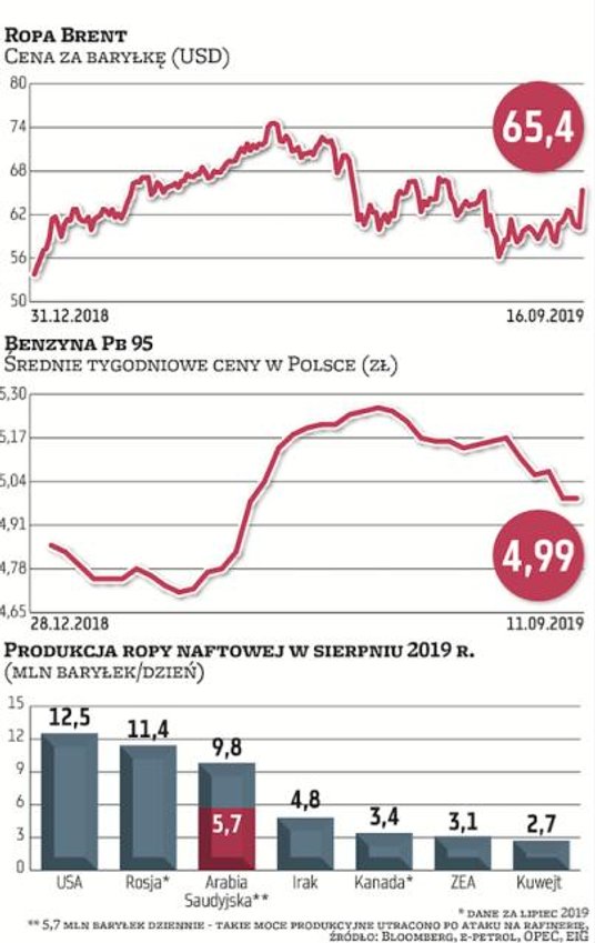 – To był przeprowadzony z premedytacją atak na globalną gospodarkę i na światowy rynek energetyczny – w ten sposób Rick Perry, amerykański sekretarz ds. energii, skomentował atak na saudyjską rafinerię w Abqaiq i pole naftowe Khurais. Zamach doprowadził do spadku produkcji ropy naftowej w Arabii Saudyjskiej aż o 5,7 mln baryłek dziennie, co oznacza utratę ponad połowy produkcji saudyjskiej i blisko 5 proc. globalnej. To największe pojedyncze zakłócenie dostaw ropy w historii.