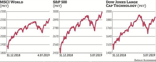 Indeks MSCI World zyskał od początku roku prawie 17 proc. i zbliża się do rekordu ze stycznia 2018 r. Amerykański indeks S&P 500 wzrósł w tym czasie o prawie 20 proc. i ustanawia rekord za rekordem. Amerykańska i globalna hossa trwają, mimo że pojawia się coraz więcej sygnałów świadczących o spowolnieniu światowej gospodarki. Analitycy Societe Generale zwracają jednak uwagę na to, że tegoroczne zwyżki na globalnych giełdach są napędzane głównie przez stosunkowo wąską grupę spółek o wielkiej kapitalizacji. Mniejsze firmy radzą sobie dużo słabiej.