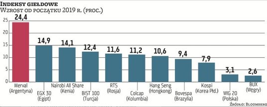 Ostatnie tygodnie przyniosły wyraźne ożywienie na rynkach wschodzących. Indeks MSCI Emerging Markets zyskał od początku roku blisko 8 proc. Wśród najlepszych indeksów giełdowych świata znalazły się w tym okresie: argentyński Merval (+24 proc.), turecki BIST 100 (+12 proc.) i rosyjski RTS (+11,6 proc.). Dobrze radziło sobie w tym czasie również wiele walut z rynków wschodzących. Rubel rosyjski zyskał od początku roku blisko 6 proc. wobec dolara, real brazylijski umocnił się o 4,6 proc., rand RPA zyskał ponad 4 proc.,a ukraińska hrywna i peso meksykańskie wzrosły po ponad 2 proc. Oczywiście niektóre waluty z rynków wschodzących traciły w ostatnich tygodniach do dolara (złoty osłabł od początku roku o ponad 2 proc., a forint węgierski o 0,3 proc.), ale wyraźnie widać, że aktywa z państw rozwijających się znów są w łaskach inwestorów.