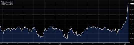 W czwartek euro kosztuje nieco ponad 4,76 leja, w porównaniu do 4,68 w połowie miesiąca, gdy deprecjacja rumuńskiej waluty nabrała impetu. Choć to oznacza, że lej stracił od początku roku wobec euro zaledwie 2,3 proc., jego osłabienie robi wrażenie na tle stabilności z ostatnich lat.