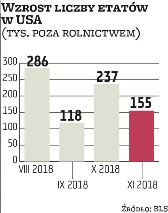 Jeszcze przed publikacją piątkowego raportu o sytuacji na amerykańskim rynku pracy „Wall Street Journal" donosił, że Rezerwa Federalna rozważa zasygnalizowanie w komunikacie z grudniowego posiedzenia bardziej ostrożnego i wyczekującego stanowiska co do stóp w 2019 r.