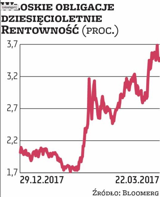 Analitycy Goldman Sachs wskazują, że włoski dług może się znaleźć pod większą presją, jeśli konflikt Włoch z UE będzie się przedłużał. Wzrost rentowności obligacji może wówczas posłużyć jako środek nacisku rynków, by rząd zmienił politykę.