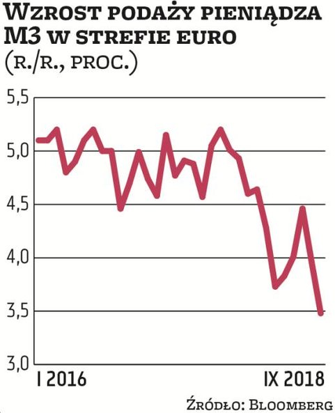 Spowolnienie gospodarcze w strefie euro objawia się już w wolniejszej akcji kredytowej. Podaż pieniądza M3 w Eurolandzie wzrosła w sierpniu o 3,5 proc., po tym jak w lipcu zwiększyła się o 4 proc. Jej wzrost był więc najwolniejszy od 2014 r. i o 0,4 pkt proc. niższy niż mówiła średnia prognoz analityków. Problemy z kredytem koncentrują się w dużym stopniu we Francji i Włoszech.