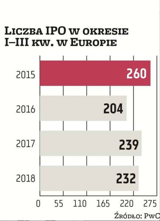 Zdaniem ekspertów ożywienia na rynku pierwotnym można się spodziewać nie wcześniej niż w II kwartale 2019 r. Bartosz Margol, dyrektor w zespole ds. rynków kapitałowych PwC, podkreśla, że aktywność w zakresie IPO w Warszawie jest po trzech kwartałach najsłabsza od 2003 r. Sprawa GetBacku i jej skutki zamroziły polski rynek i tak dotknięty już niskimi wycenami, spadającą płynnością oraz ciągłą niepewnością dotyczącą przyszłości OFE. Przyjęta przez Sejm ustawa o pracowniczych planach kapitałowych jest wprawdzie pozytywnym sygnałem, ale nie będzie miała istotnego, realnego wpływu na rynek w krótkim okresie.