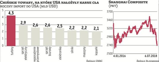 – USA rozpoczęły największą wojnę handlową w historii – stwierdził rzecznik chińskiego Ministerstwa Handlu. W piątek o północy czasu waszyngtońskiego weszły w życie amerykańskie, karne, 25-proc. cła na chińskie produkty, których sprowadza się do USA za 34 mld USD rocznie. Chiny kilka godzin później odpowiedziały podobnymi cłami na 545 rodzajów amerykańskich produktów, których importuje się do Chin za 34 mld USD rocznie. Za dwa tygodnie ma wejść w życie kolejna tura amerykańskich podwyżek ceł uderzających w Chiny – tym razem na produkty warte 16 mld USD rocznie. Na tym jednak wymiana ciosów handlowych może się nie skończyć.