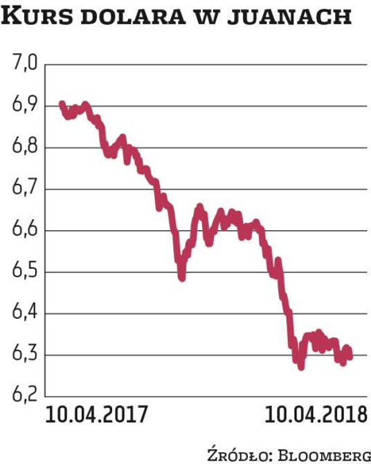 Przemówienie chińskiego prezydenta zmniejszyło obawy przed wybuchem wojny handlowej na pełną skalę i przyczyniło się we wtorek do lekkich zwyżek na globalnych giełdach. Z Chin płynęły też jednak sygnały o ich gotowości do dalszej konfrontacji. Rząd ChRL złożył we wtorek oficjalną skargę do Światowej Organizacji Handlu (WTO) na podwyżkę amerykańskich ceł na stal i aluminium. Agencja Bloomberga donosi zaś, że chińskie władze rozważają dewaluację juana. Osłabienie narodowej waluty wobec dolara byłoby dodatkowym środkiem wspierającym chiński eksport. Dewaluacja naraziłaby jednak Chiny na dalszy amerykański odwet handlowy i utrudniła chińskim spółkom spłatę dolarowych długów. Juan przez ostatnie 12 miesięcy umocnił się o blisko 9 proc. wobec dolara.