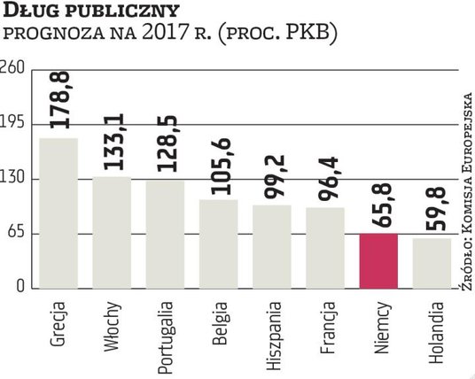 Niemcy mają jednak poważny powód, by powstanie takiej unii opóźniać jak tylko się da: to przecież oni łożyliby w ramach tego mechanizmu na słabsze państwa. Niemcy miały w zeszłym roku nadwyżkę fiskalną w wysokości 0,8 proc. PKB i dług publiczny wynoszący 68,3 proc. PKB. W unii fiskalnej znaleźliby się m.in. z Francją, mającą w 2016 r. deficyt finansów publicznych wynoszący 3,4 proc. PKB i dług publiczny sięgający 96 proc. PKB. A także z Hiszpanią, która miała wówczas deficyt finansów publicznych wynoszący 4,5 proc. PKB i dług publiczny zbliżony do 100 proc. PKB. Większość państw strefy euro nie spełniała w zeszłym roku kryteriów z Maastricht dotyczących finansów publicznych. Wiele z tych państw – z Francją na czele – nie spełnia ich od lat. Emisja wspólnych obligacji dla strefy euro służyłaby przede wszystkim ich potrzebom, ale przecież koszty obsługi długu w dużej mierze spadłyby na Niemcy. Po latach instytucjonalnej ewolucji oraz naginania traktatów mogłoby się okazać, że to Niemcy de facto gwarantują włoski dług publiczny wynoszący w zeszłym roku 133 proc. PKB tego kraju. Roger Bootle, były doradca ekonomiczny Margaret Thatcher i zarazem szef firmy badawczej Capital Economics wskazuje, że Niemcy mogłyby w wyniku unii fiskalnej stać się „magicznym drzewkiem z pieniędzmi dla strefy euro". Byłyby skazane na wieczne dotowanie południa Europy, tak jak północne Włochy dotują Sycylię czy Kalabrię.