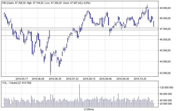 Najboleśniej wygraną kandydata Republikanów odczuł rynek japoński. Indeks Nikkei225 spadł o 5,4 proc. (najgorsza sesja od 24 czerwca tego roku) i długą czarną świecą wybił się z kanału wzrostowego. Po drodze pękło kilka krótkoterminowych wsparć, a położenie ceny minimalnej względem ceny zamknięcia sugeruje, że siła popyta była podczas dzisiejszej sesji znikoma. Najbliższy cel niedźwiedzi to 16 000 pkt, a następnie dołki z połowy roku w okolicy 15 000 pkt.