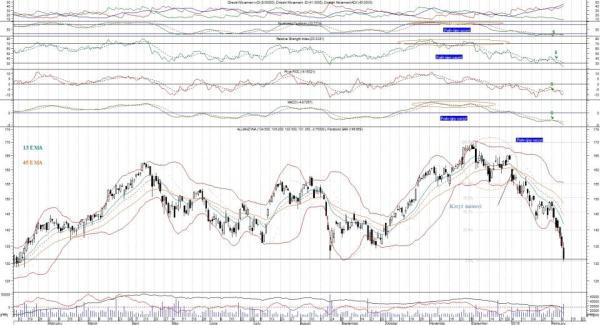 Rynki bronią się przed przeceną, ale jest to walka z potężnym przeciwnikiem, a bykom kończą się chyba powoli siły. Wielokrotnie pisaliśmy, że handel przy minimach prowadzony w takim stylu nie jest dobrym prognostykiem dla giełdowych optymistów. Zabezpieczymy się jednak przed możliwością wybronienia wsparć i dzisiaj w naszej analizie zastosujemy zlecenie Sell Stop aktywujące pozycję dopiero w momencie, kiedy cena wybije nowe dołki.