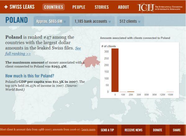 Wśród klientów HSBC jest 512 osób związanych z Polską, w tym 30 posiadających polskie obywatelstwo. Zdeponowali oni na szwajcarskich kontach nawet 293 miliony dolarów. ICIJ nie podaje jednak ich nazwisk.