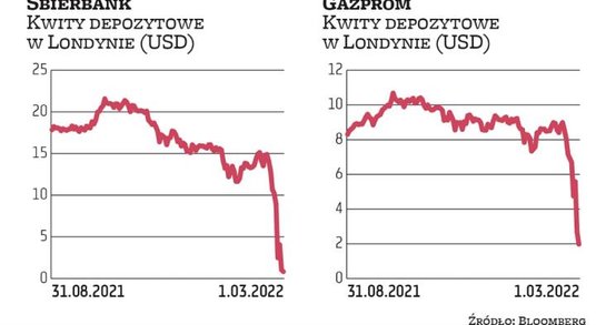 Większość europejskich indeksów giełdowych umiarkowanie traciła podczas wtorkowej sesji. Pod silną presją nadal były kwity depozytowe rosyjskich spółek notowane w Londynie. Papiery Gazpromu traciły tam aż 32 proc., a Sbierbanku ponad 20 proc. Od szczytów z jesieni 2021 r., Gazprom stracił na giełdzie londyńskiej już 83 proc., a Sbierbank ponad 90 proc. Nic dziwnego więc, że giełda w Moskwie była zamknięta już drugi dzień z rzędu. Regulator chce uniknąć panicznej wyprzedaży i najprawdopodobniej moskiewski rynek akcji pozostanie zamknięty do 5 marca. Rubel nadal był we wtorek bardzo osłabiony – kurs dochodził rano do 108 rubli za 1 USD, ale po południu zszedł do 101 rubli. Władze starają się bronić waluty za pomocą działań administracyjnych, czyli ograniczeń w transferach zagranicznych.