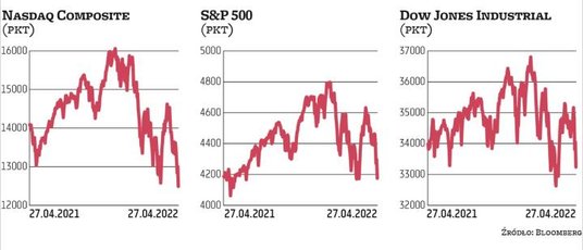 Nowojorski indeks technologiczny Nasdaq Composite stracił od rocznego szczytu do środowego otwarcia już 23 proc. W środę zaczął on sesję od zwyżki o 0,6 proc., po tym jak we wtorek spadł aż o prawie 4 proc. (był to dla niego najgorszy dzień od września 2020 r.). Bezpośrednimi impulsami do wtorkowej przeceny Nasdaq były rozczarowujące wyniki koncernu Alphabet (Google), a także wyprzedaż akcji Tesli.