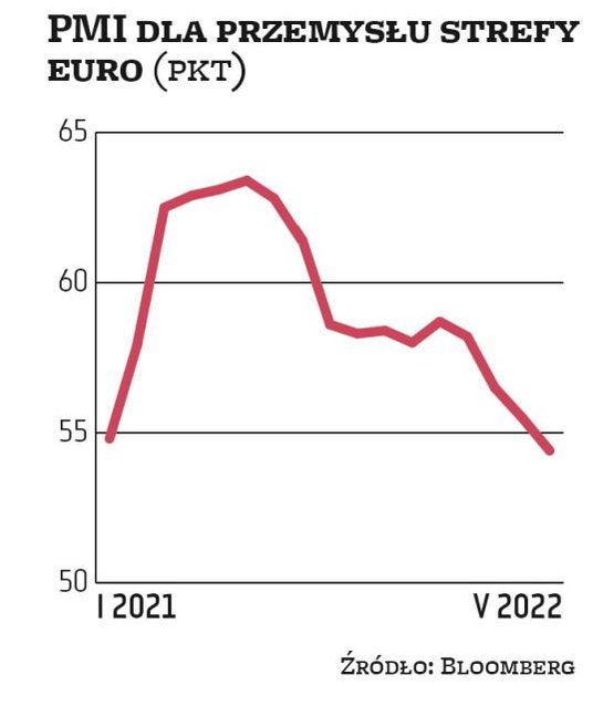 – Niewielki spadek łącznego PMI dla przemysłu i sektora usług strefy euro sugeruje, że aktywność gospodarcza trzyma się lepiej, niż się obawialiśmy. Odbiciu w sektorze usług prawdopodobnie powinno jednak zabraknąć mocy, gdyż inflacja jest wysoka, a spadek nowych zamówień źle wróży przemysłowi. Wzrost PKB powinien być więc słaby w dalszej części tego roku – prognozuje Jessica Hinds, ekonomistka firmy badawczej Capital Economics.