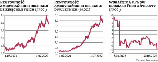 Obawy przed recesją zwiększył natomiast odczyt wskaźnika GDPNow liczonego przez oddział Rezerwy Federalnej w Atlancie. Ten wskaźnik jeszcze pod koniec maja sugerował, że wzrost gospodarczy w USA wyniesie w drugim kwartale 1,9 proc. (To wyliczenia annualizowane, czyli liczone kw./kw. w tempie rocznym). W połowie czerwca pokazywał on już zerowy wzrost. Na koniec miesiąca sugerował już natomiast spadek PKB o 1 proc. Prognoza dla konsumpcji prywatnej została obniżona ze wzrostu o 2,7 proc. do spadku o 8,1 proc. Gdyby prognoza Fedu z Atlanty się sprawdziła i PKB USA spadł w drugim kwartale o 1 proc., to gospodarka amerykańska już byłaby w technicznej recesji. W pierwszym kwartale PKB Stanów Zjednoczonych spadł bowiem o 1,6 proc.