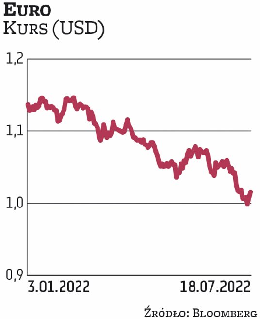 Czwartkowe posiedzenie Europejskiego Banku Centralnego ma przynieść pierwszą od 2011 r. podwyżkę stóp procentowych w strefie euro. Analitycy średnio oczekują, że stopa refinansowa (główna) zostanie podniesiona o 25 pkt baz., do 0,25 proc., a stopa depozytowa również o 25 pkt baz., do minus 0,25 proc. Część ekspertów spodziewa się jednak, że EBC może podnieść stopy o 50 pkt baz. Za takim scenariuszem przemawia zarówno przyspieszająca inflacja (która wyniosła w czerwcu 8,6 proc. rok do roku), jak i osłabienie euro wobec dolara. Co prawda euro zyskiwało w poniedziałek po południu 0,5 proc. wobec amerykańskiej waluty, ale od początku roku straciło do niej 10,9 proc., a w zeszłym tygodniu kurs euro krótkotrwale spadł poniżej parytetu z dolarem i był najniższy od 2002 r.