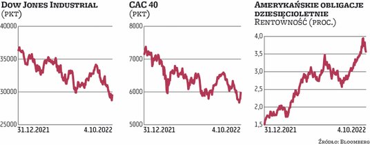 Przez globalne rynki akcji przetaczała się we wtorek fala optymizmu. Wiele europejskich indeksów giełdowych zyskiwało po południu o ponad 2 proc. WIG20 rósł wówczas o 3 proc., francuski CAC 40 zyskiwał 3,5 proc., a czeski PX skoczył o prawie 5 proc. Sesja w USA zaczęła się od zwyżek, po tym gdy dzień wcześniej Dow Jones Industrial zyskał 2,7 proc. Rentowność amerykańskich obligacji dziesięcioletnich – przekraczająca w zeszłym tygodniu 4 proc. – spadła we wtorek poniżej 3,6 proc. Słabł dolar, za którego płacono już poniżej 4,85 zł. Inwestorzy wyraźnie nabrali nadziei na to, że Fed zacznie mniej agresywnie zacieśniać politykę pieniężną.