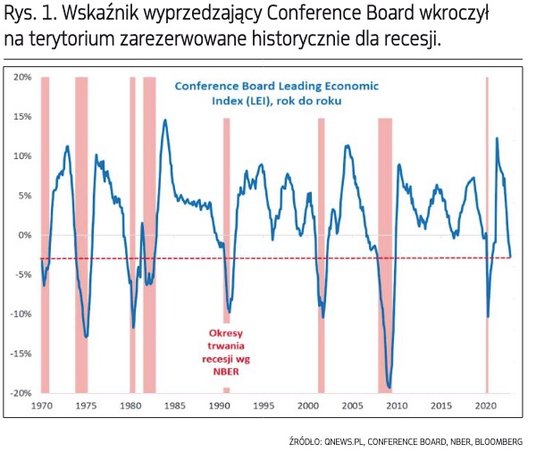 Jeśli zatem wierzyć sprawdzonym historycznie na przestrzeni wielu dekad sygnałom Conference Board LEI, scenariusz recesji – wcześniej jedynie hipotetyczna możliwość – może zacząć się niebawem materializować, chyba że obecny cykl jest całkowicie odmienny od historycznej normy i wpisze się w nadzieje na to, że „tym razem będzie inaczej”.